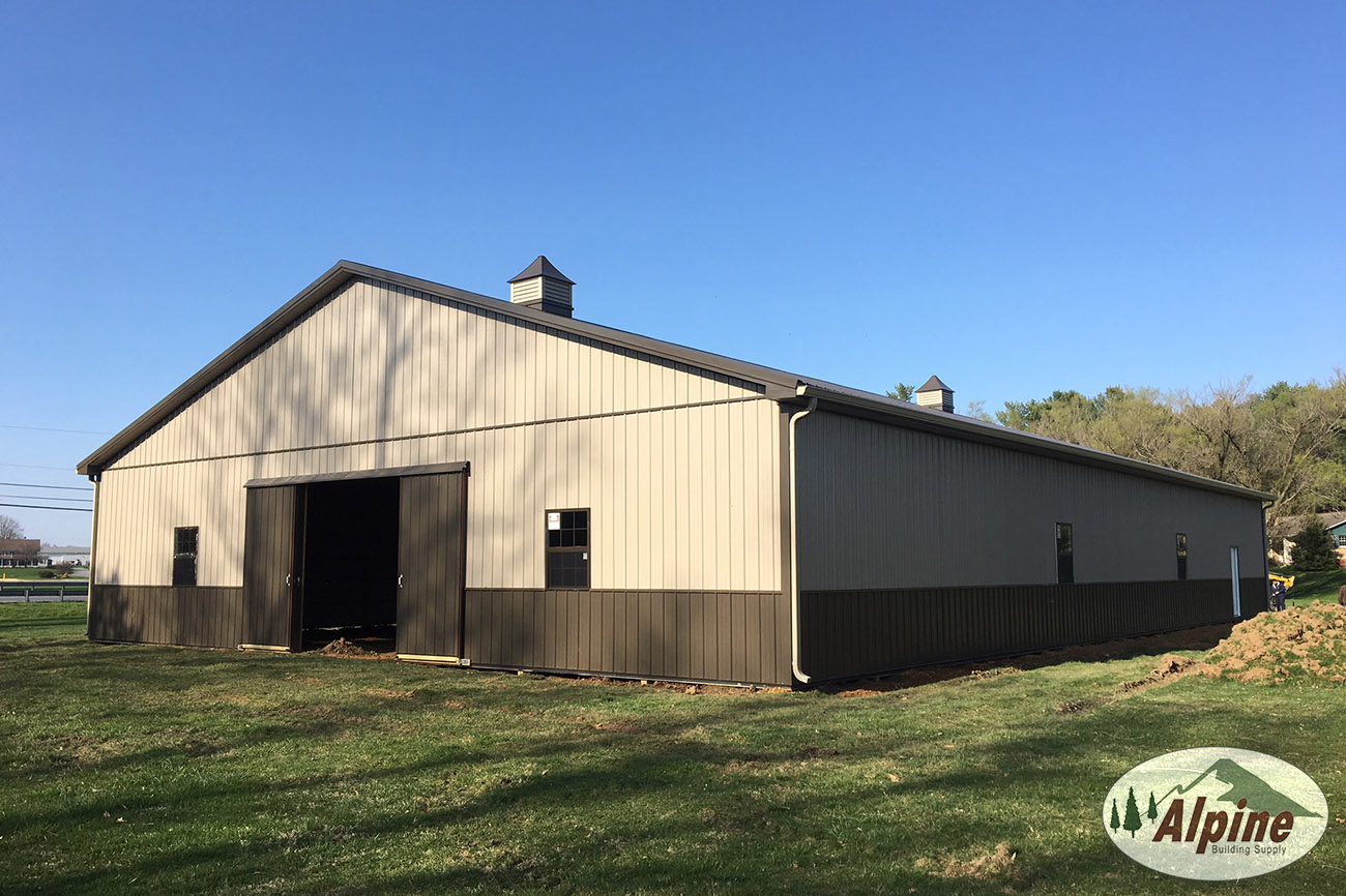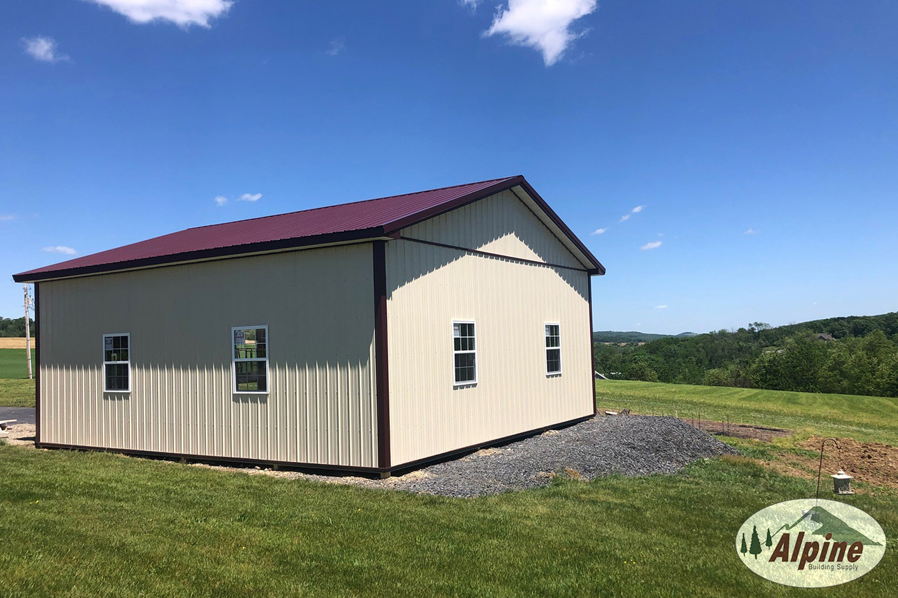 Look through our photo gallery for some ideas of what some of our customers did with our materials. You can purchase a whole building kit and have a local contractor build it for you or you could build it yourself. We sell metal roofing, side steel, windows, garage doors, & many other materials for pole buildings. We also sell the steel that is know as the liner panel to finish off the inside of a pole building or garage. Alpine is the perfect store for the Do-It-Yourselfer or Contractor, we can supply all the materials necessary to build a pole building. Call Us Today: 570-739-4606.